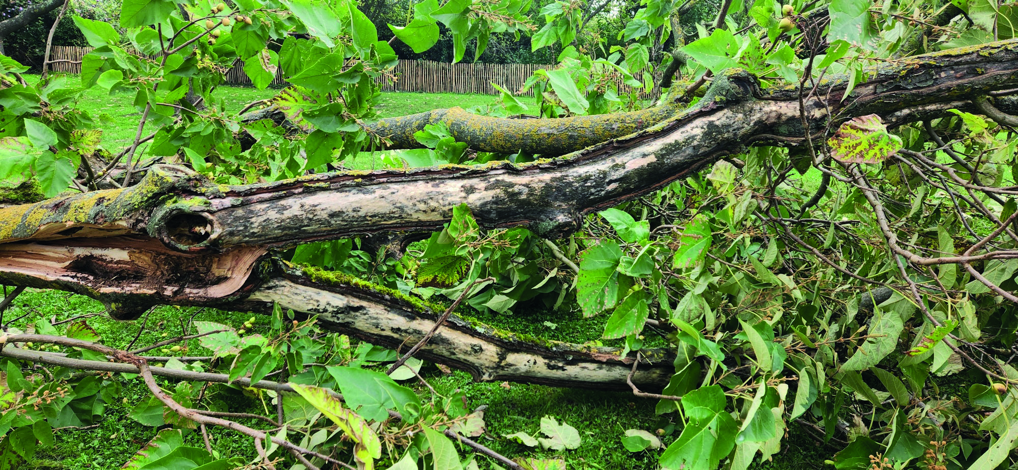 Les photos ci-dessous montrent de grandes échaudures sur les paulownias, des troncs de pruniers altérés par les champignons et des charpentières de saules pleureurs parsemées de trous.